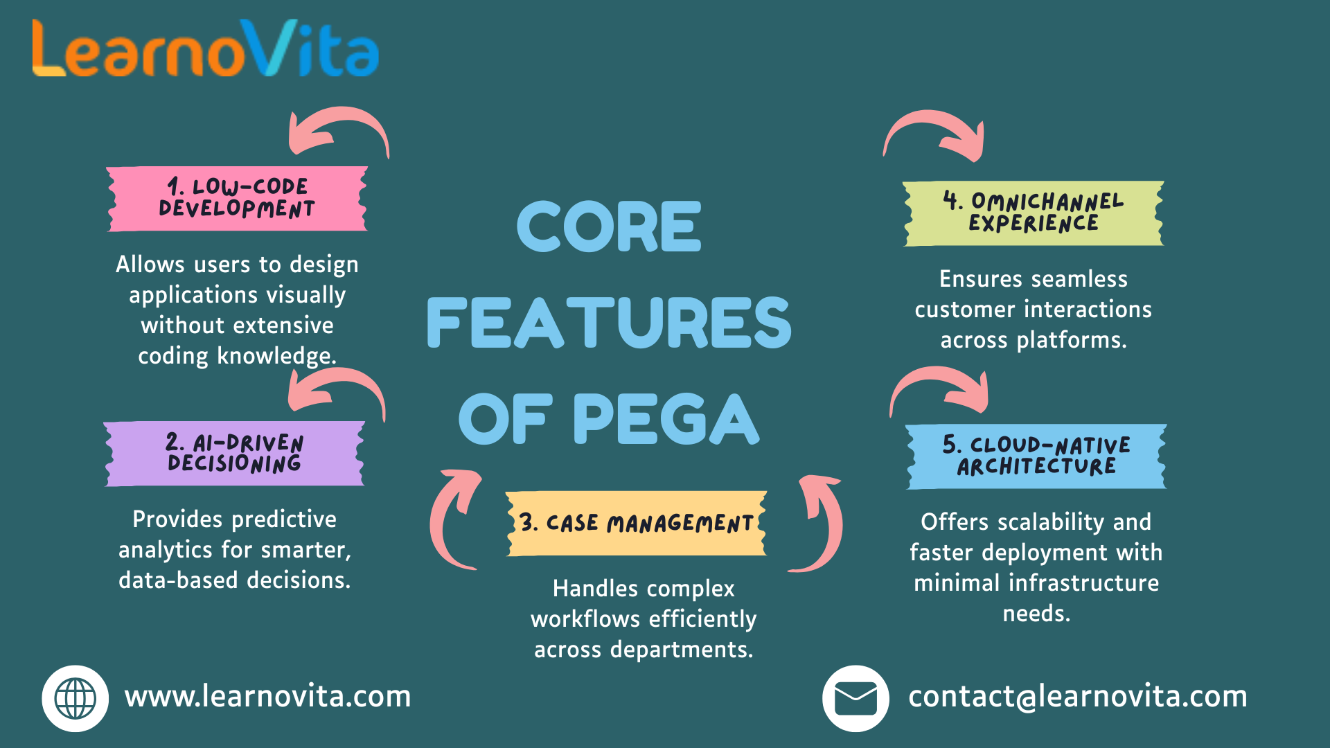 These features make Pega a transformative tool for organizations aiming to digitize and optimize their operations.