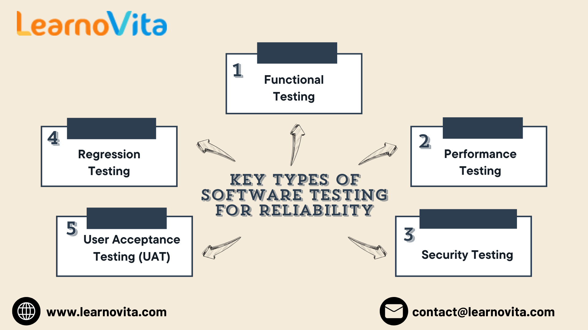 Different testing methods address specific quality aspects that collectively enhance software reliability.