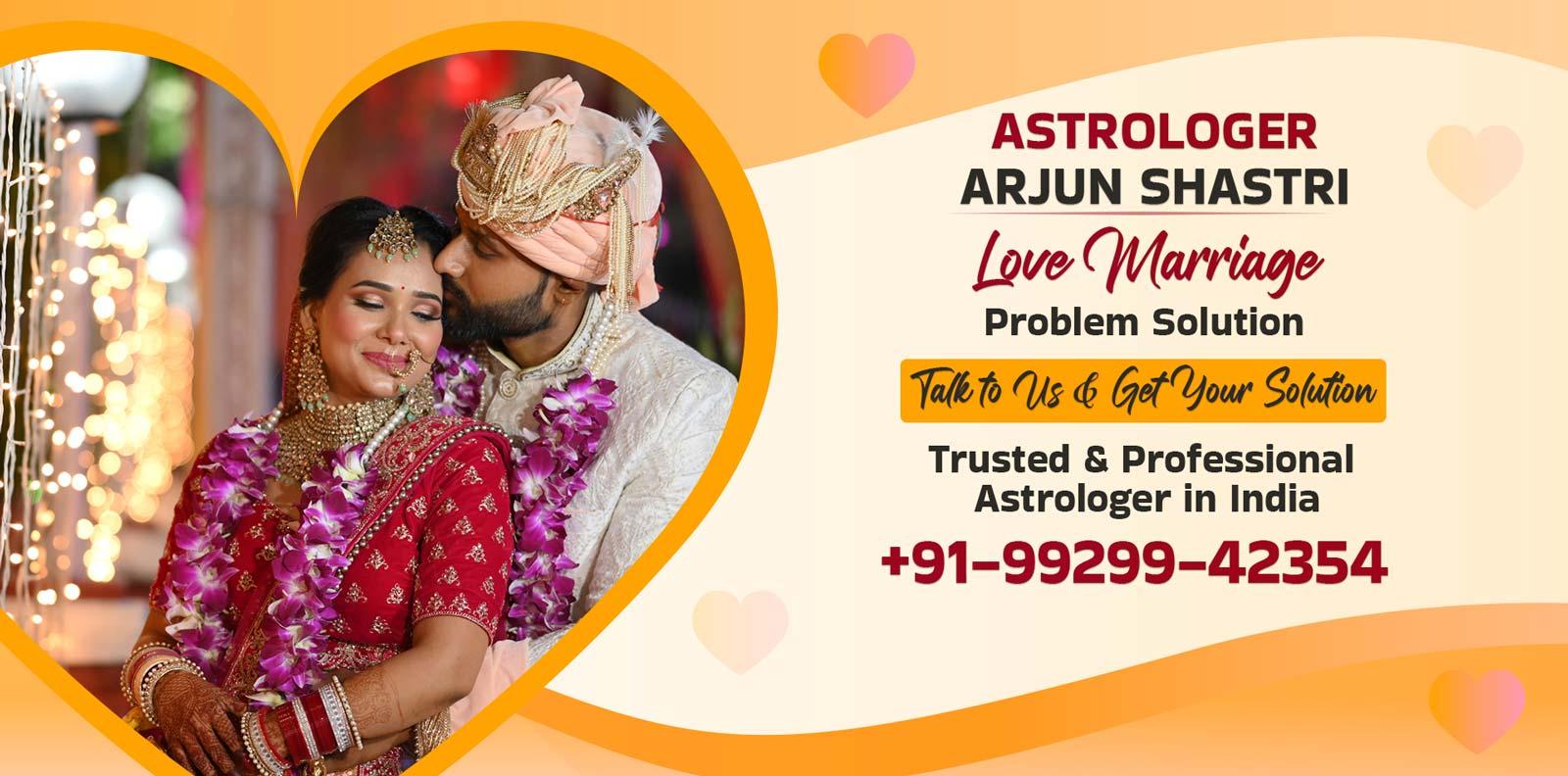 Astrologer Pandit Arjun Shastri is one of the Best Love Problem Solution Astrologer in India online, helped many couples who's facing challenges in there personal and love life, He has deep knowledge of Vedic Astrology & horoscope reading (kundli), he helps couples understand compatibility, overcome obstacles, and move towards a happy life. His calm and personal approach has helped many find peace in love. Many individuals across India trust his experience for bringing peace and clarity in their love life journey, that why he recognized best astrologer in India.